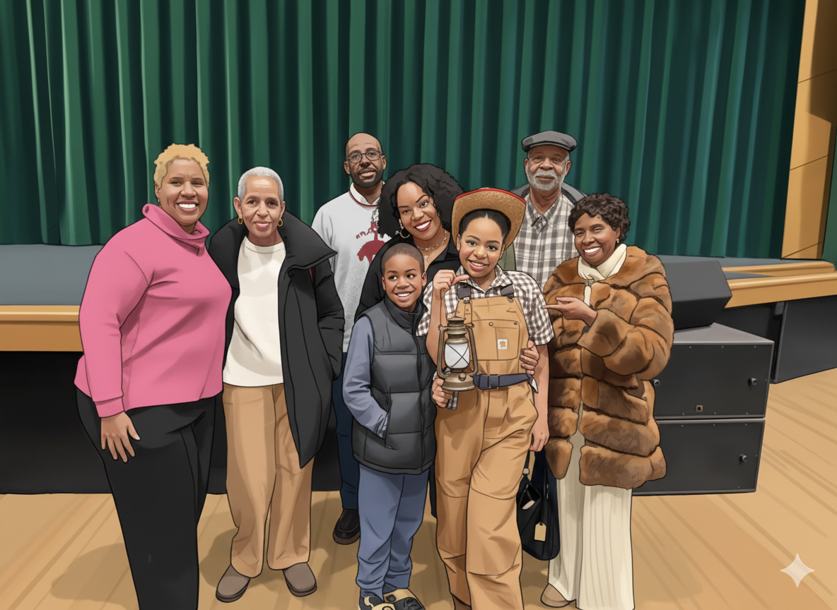 I dropped off the girl and then drove home to pick up the rest of the family. Arriving at the high school again, we filed into the auditorium and found our seats – second row, right in front of the stage. We spotted family and friends dispersed throughout the crowd. Many friends and family braved the frigid cold and snow to show support. Grandparents, aunts, great-aunts, Godmother, cousins, neighbors, and sorority sisters (Alpha Kappa Alpha) of my wife came out to show love. Soon it was showtime. A live, slow instrumental to Over the Rainbow began to permeate the auditorium. In the darkened auditorium, the student portraying Dorothy soon was spotlighted alongside the aisle as she walked slowly toward the stage. My nerves began to heighten.